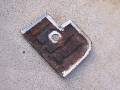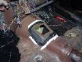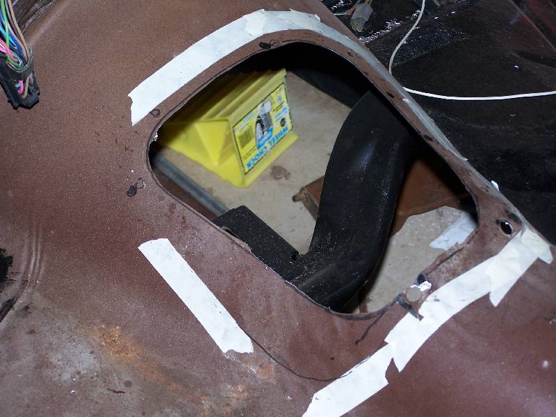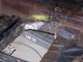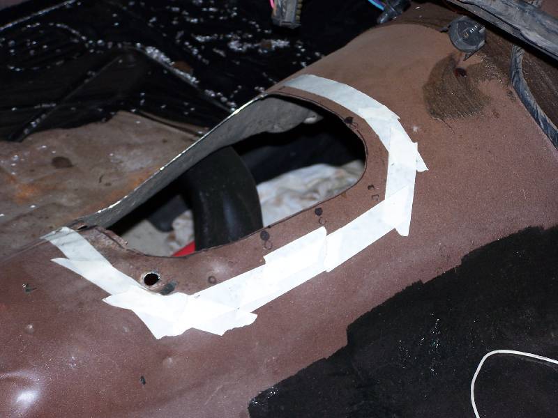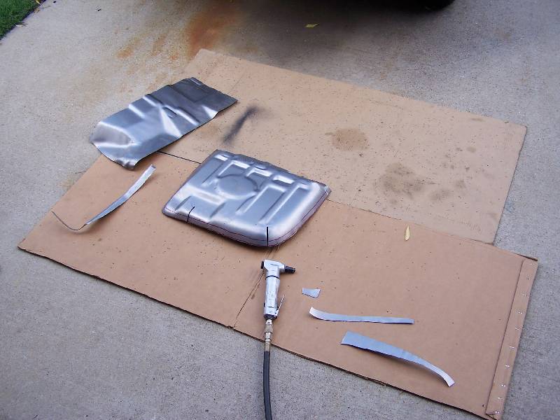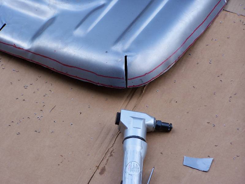 Here are a couple of air tools that were handy - a nibbler on the left, and a flanger / punch on the right. The nibbler cut through the steel like butter, you just have to have a starting hole big enough for the head. Just cut off the excess metal along the line. The only down side of the nibbler are the little steel "toenails" that are left over, and in the third picture. They embed themselves in your shoes, the palms of your hands, your knees, everywhere!