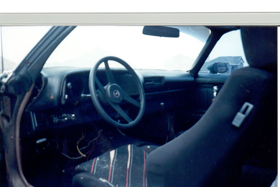 Since the dash was a mess, I can't tell if it had extra lighing yet, and the original hood is gone (it came with a '79 Z28 hood). Standard instrumentation. It does have the bright trim around the upper edge of the doors, fender and hood. A very basic Camaro.