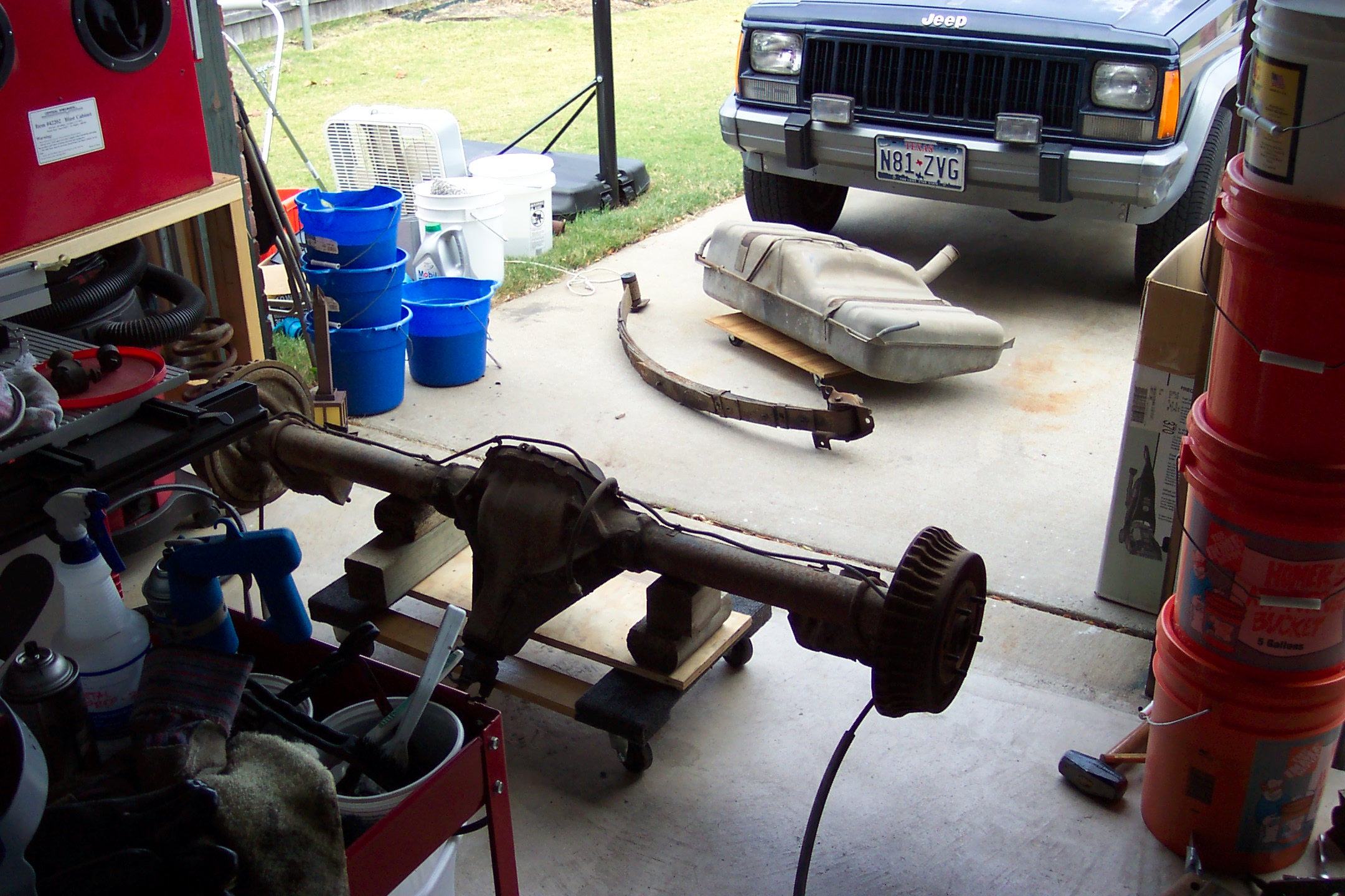 Now that I have the front suspension together, time for the rear. New 125 lb springs, new bushings, shackles and spring pads. The 3.73 is really a 3.08.