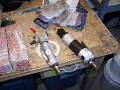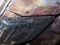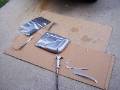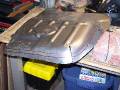 Here are a couple of air tools that were handy - a nibbler on the left, and a flanger / punch on the right. The nibbler cut through the steel like butter, you just have to have a starting hole big enough for the head. Just cut off the excess metal along the line. The only down side of the nibbler are the little steel "toenails" that are left over, and in the third picture. They embed themselves in your shoes, the palms of your hands, your knees, everywhere!