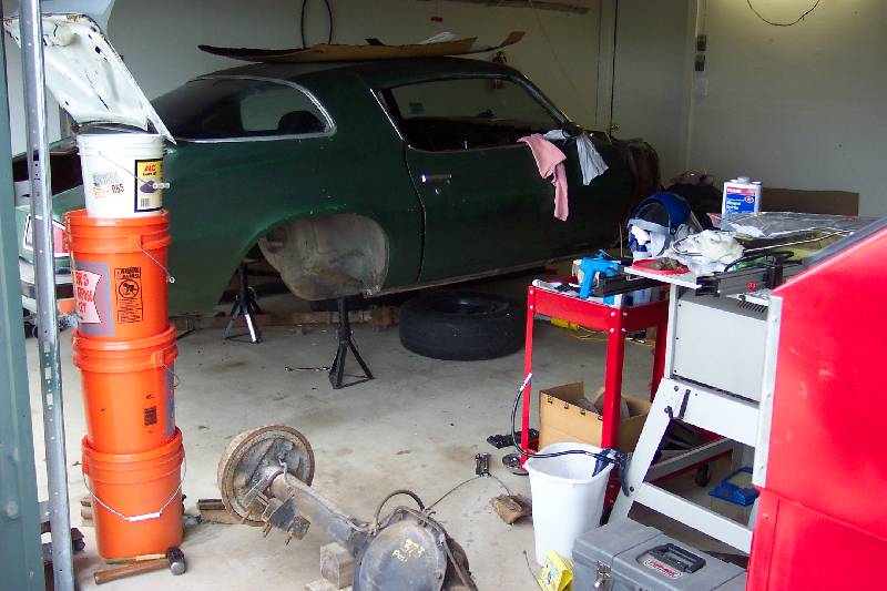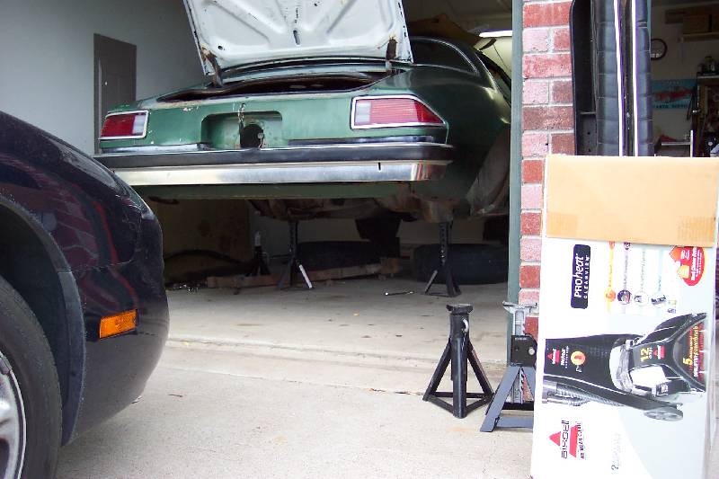 When I first got the car, the previous owner had installed 1" lowering blocks in an effort to lower the rear stance, as in the first pic above. The second pic shows how high the car sat after I removed the lowering blocks. The third pic is how it looks after I installed the 4 leaf springs.